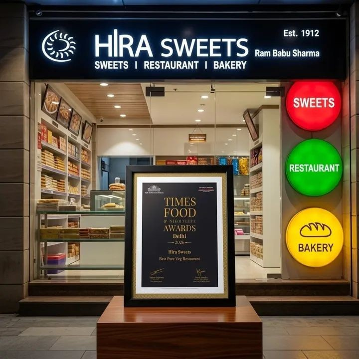 Celebrating a proud milestone! Hira Sweets has been honored as the Best Pure Veg Restaurant at the Times Food & Nightlife Awards, Delhi 2026.